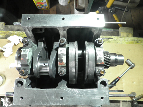 Jetzt probiert man ob sich die Kurbelwelle leicht drehen läßt und