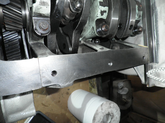 Dann setzt man die Ölwanne drauf . Einseitig hinten leicht gehoben . |