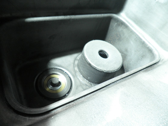 Vor dem Einbau der Ölwanne kontroliert man noch das Ölsieb ob dies auch richtig sauber ist . |