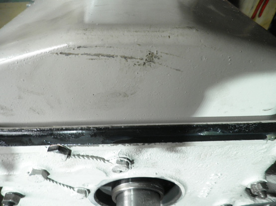 Der 188er hat eine ganz eigene Ölwannendichtung wie man sie nur selten sieht . Als erstes bestreicht man die glatte Fläche leicht nur mit Fett. |