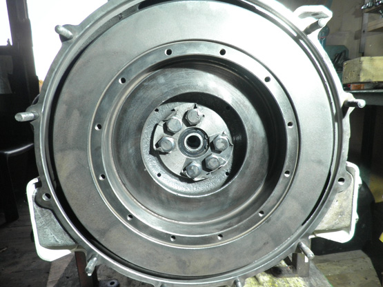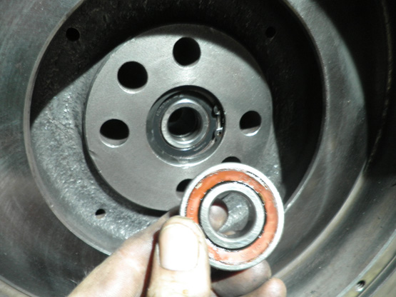 Bevor man den Schwung reinbaut den Zahnkranz begutachten ob der auch noch gut ist , und dann dass Lager in der Mitte tauschen . |