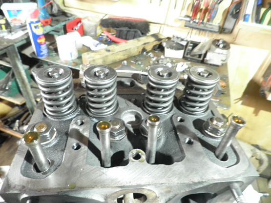 Als nächstes kommen die Ventilstößel rein. Die Stößel haben Löcher und sind innen hohl. Hier sollte man mit der Luft durchblasen damit die Bohrung auch frei ist. |