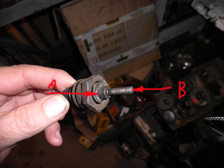 Jetzt noch eine kleine Kerzenkunde.Das Prüfen der Glühkerze findet wie folgt statt: Auf die Fläche A Strom zuführen Plus und bei B Minus anhängen ist die Kerze in Ordnung glüht die Spirale vorderseitig aber nur sehr kurz Strom draufgeben damit sie nicht abbrennt und aufpassen dass man sich nicht verbrennt . Die Kerze darf auch keinen Durchgang haben zum Gehäuse ( Gewinde) sonst ist sie auch deffekt . |