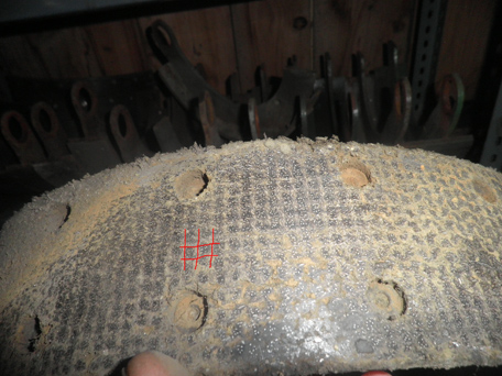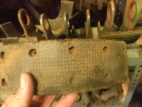 Das nächste ist die Sache mit dem Belag. Die org. Beläge die es zu Kaufen gab als die Ersatzteilversorgung noch in Ordnung war hatten als verstärkung ein Gewebe integriert . Am linken Bild habe ich es ROT markiert . Es war entweder ein Messinggeflecht oder ein syntetisches Gewebe. Dies diente zur Verstärkung für den halt an der Backe. |