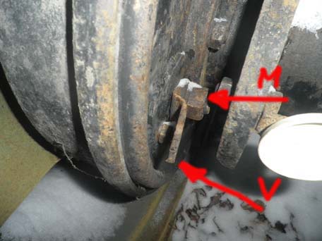Die neuere Ausführung , dies ist der Versteller. Man öffnet die Mutter M , aber dabei muss man beachten dass eine Seite ein LINKS und die zweite Seite ein RECHTS Gewinde hat | |||