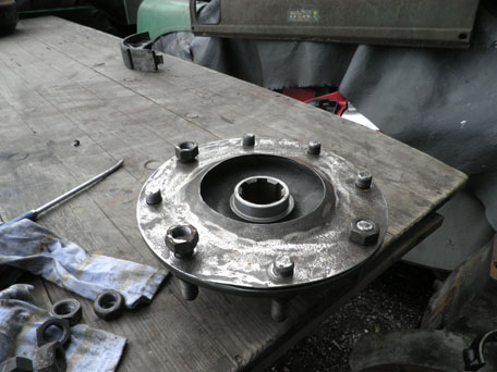 Als erstes pressen wir die Radbolzen wieder rein . | |||